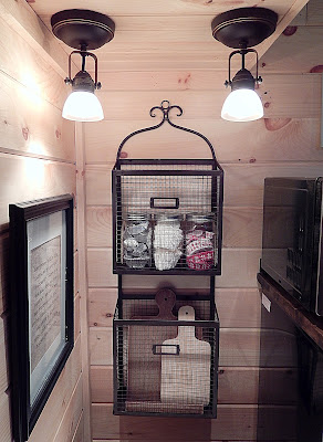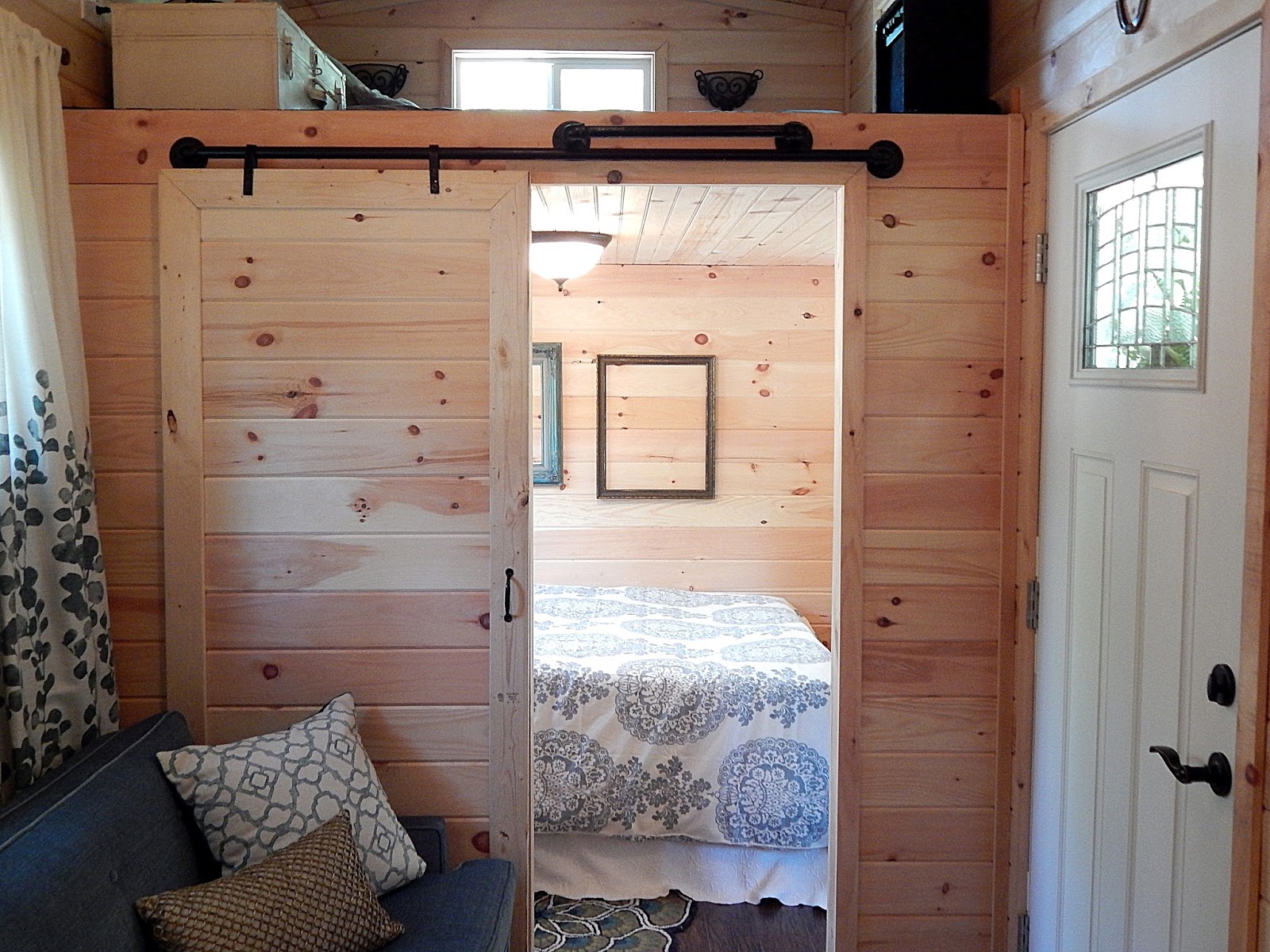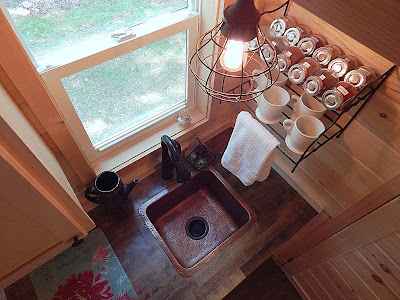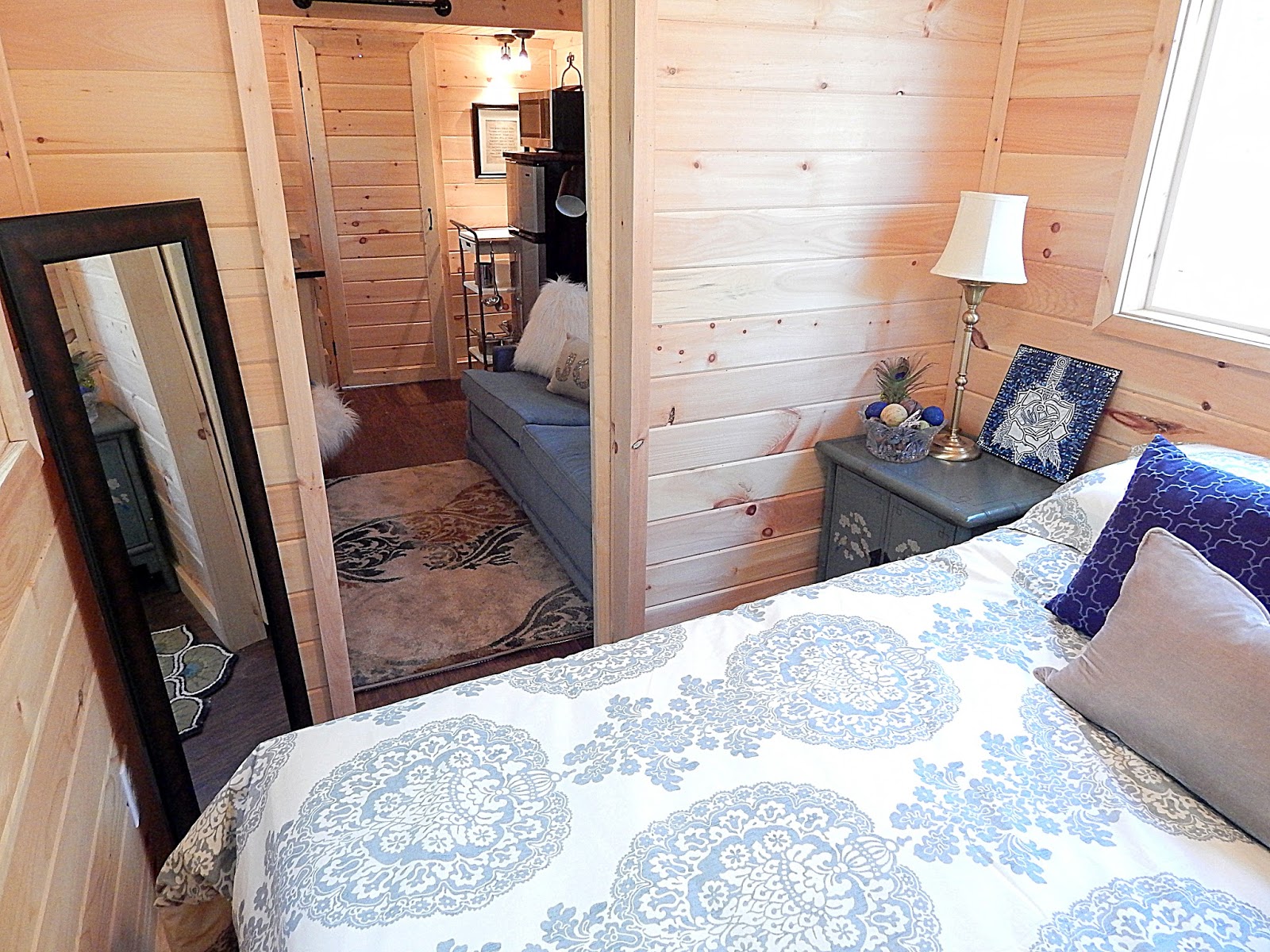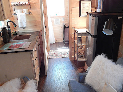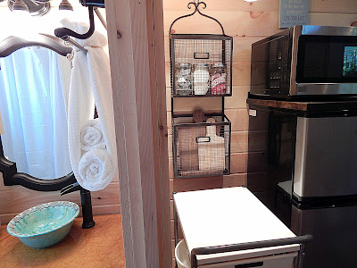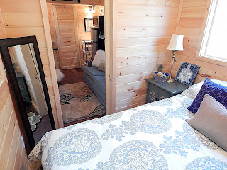we carried the blue decor throughout the 8' wide by 24' long house.)