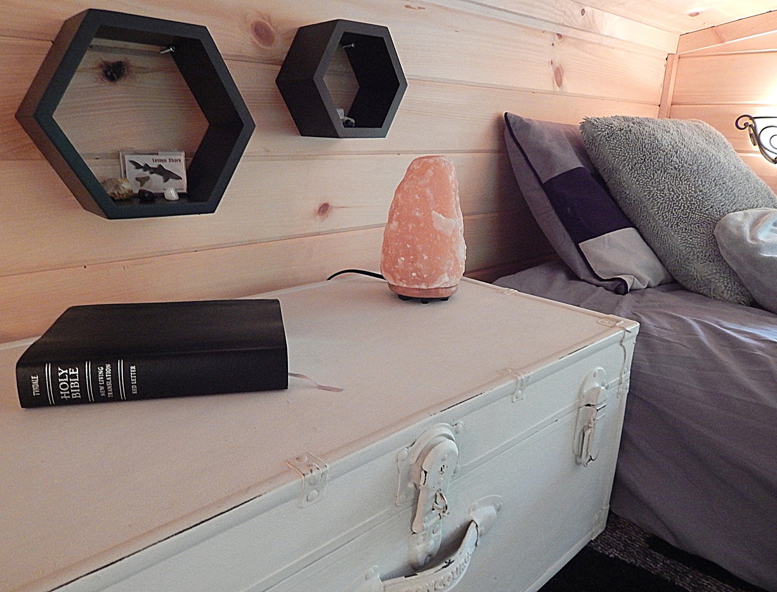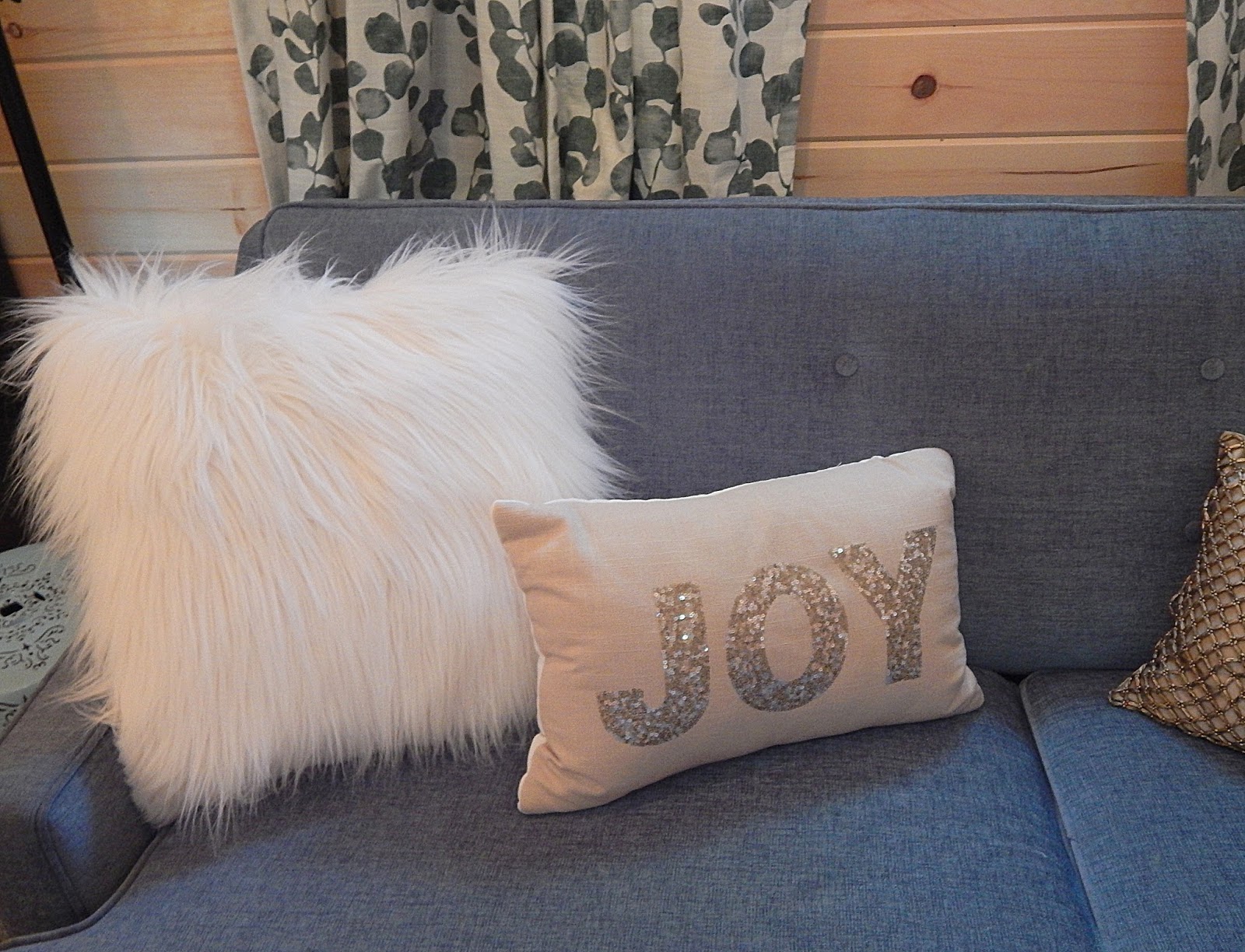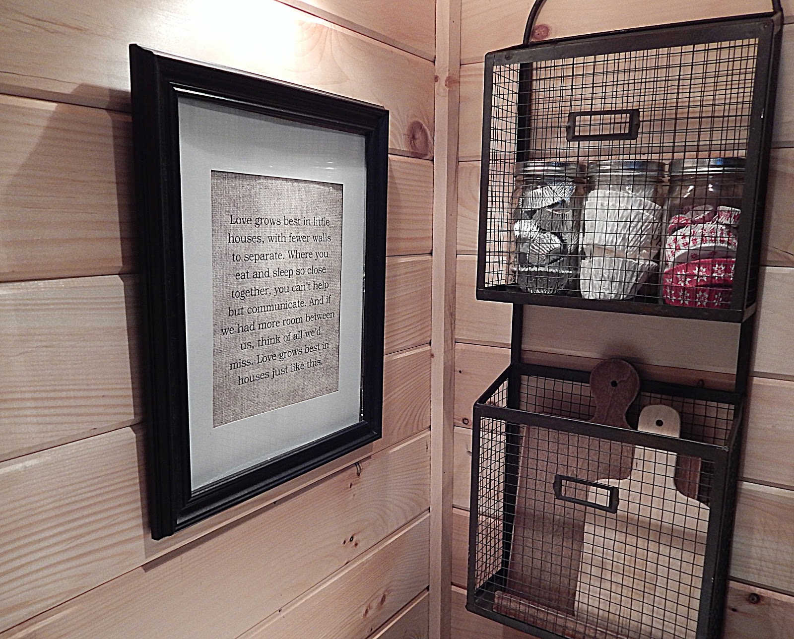 we carried the blue decor throughout the 8' wide by 24' long house.)